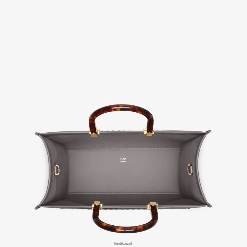 Fendi رمادي نحيف متسوق جلدي متوسط الحجم من صن شاين RTJZ884 مُكَمِّلات