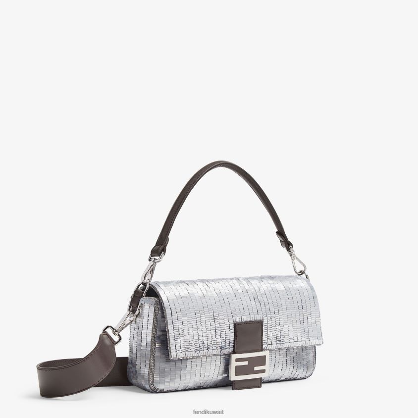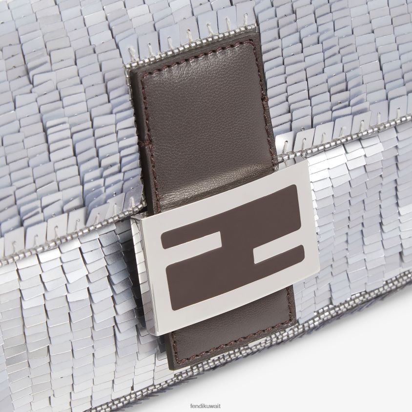 Fendi فضة نحيف حقيبة إعادة الإصدار مصنوعة من الترتر بلون الألومنيوم RTJZ795 مُكَمِّلات