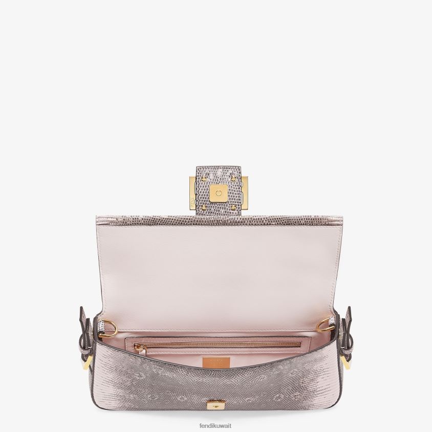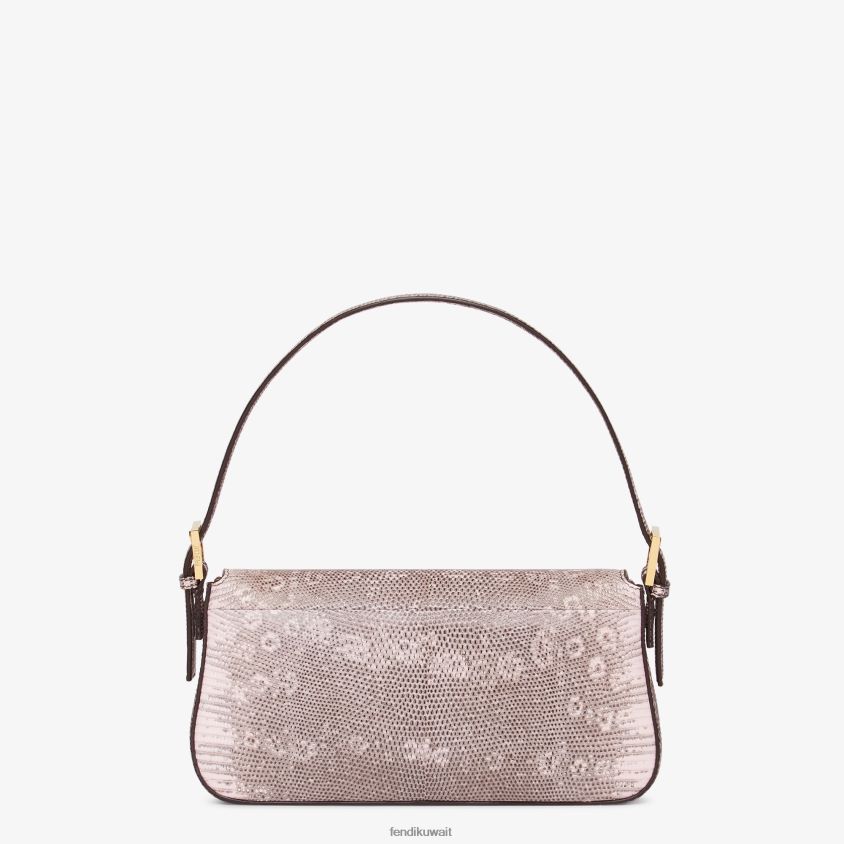 حقيبة باغيت متوسطة الحجم 1997 مصنوعة من جلد السحلية الوردي مزين بمشبك على شكل حرف ff.
