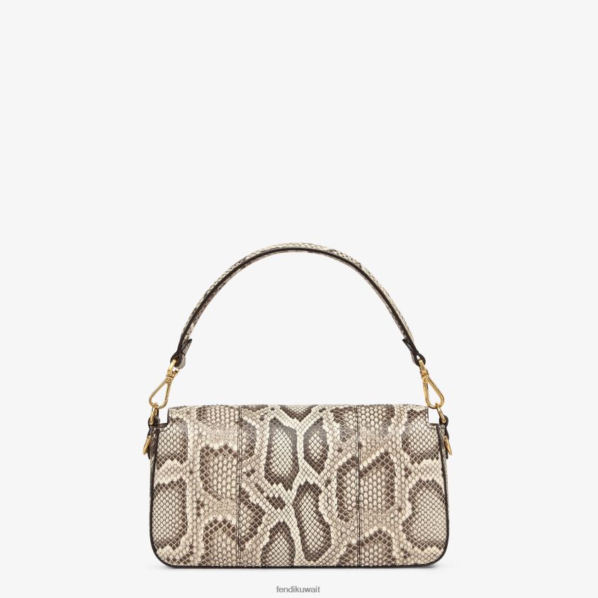 حقيبة باغيت متوسطة الحجم مصنوعة من جلد الثعبان الطبيعي الرائع ومزينة بمشبك على شكل حرف FF.