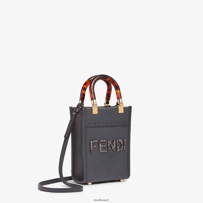 حقيبة تسوق صغيرة "صن شاين" مصنوعة من الجلد باللون الرمادي الداكن مع حروف فندي روما في شكل الثعبان المطبوع ومقابض شبكية صلبة بتأثير صدفة السلحفاة.