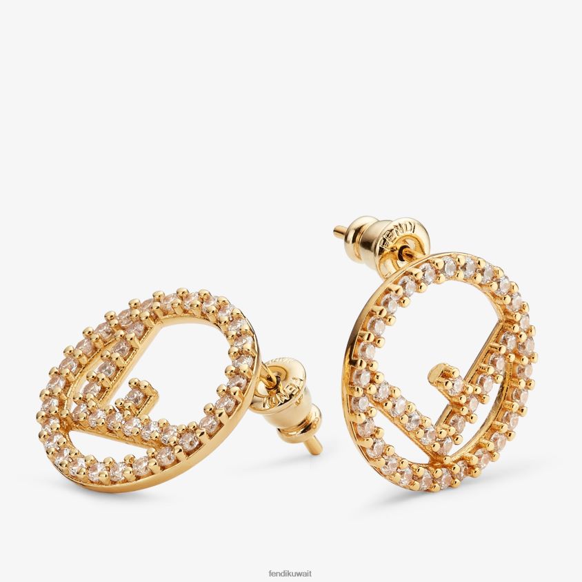 أقراط حلقية مع حرف f من تصميم فندي. مصنوعة من المعدن مع لمسة نهائية ذهبية. مزين بالكريستال الأبيض.