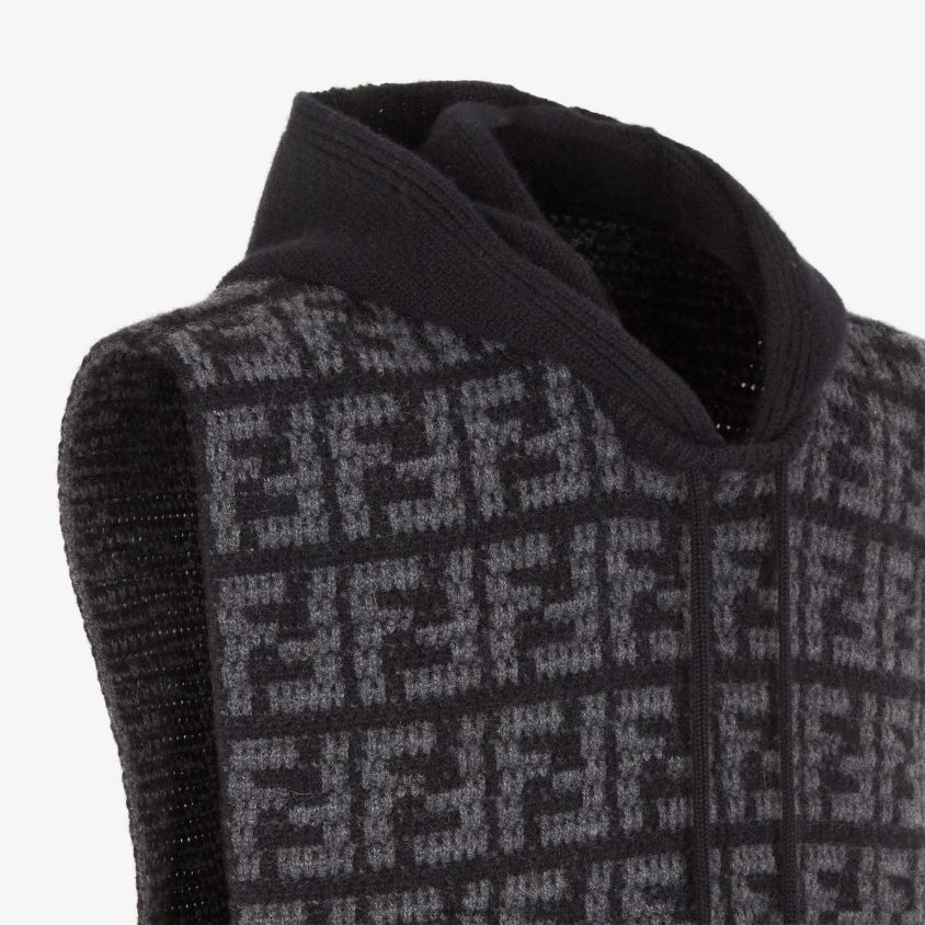 Fendi أسود رجال مريلة الكشمير RTJZ2471 مُكَمِّلات