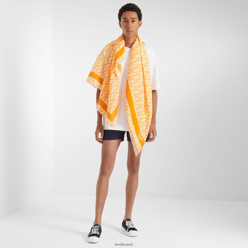 صوفية مستطيلة الشكل مصنوعة من القطن والحرير مع شعار FF قطري بتأثير إيكات مطبوع بالكامل باللونين الأبيض والبرتقالي. حدود بلون ثابت وشعار فندي روما مطابق للألوان.
