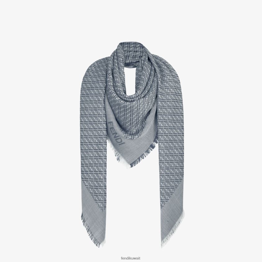 Fendi أزرق نحيف شال من الحرير والصوف RTJZ216 مُكَمِّلات