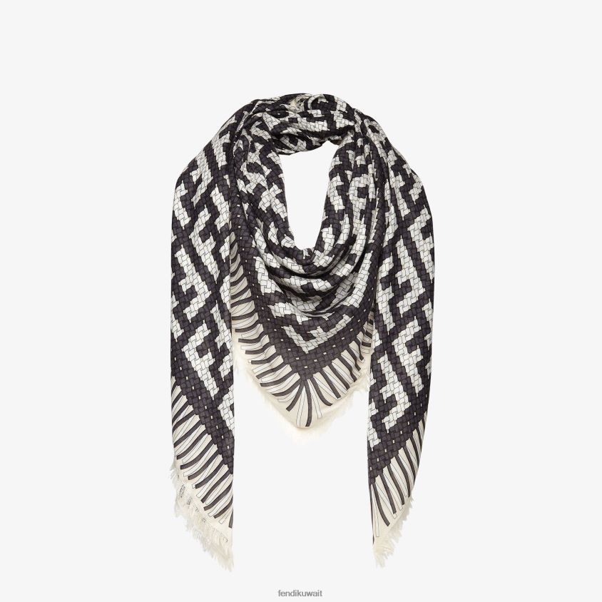 Fendi أسود نحيف شال مشروط والحرير RTJZ179 مُكَمِّلات