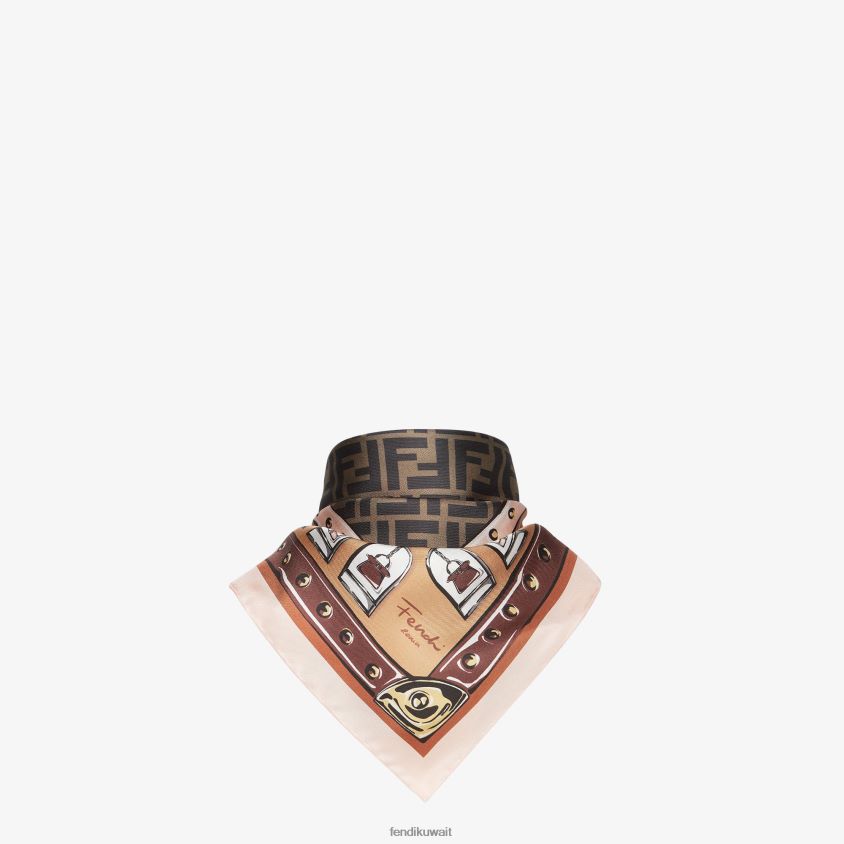 Fendi بني نحيف فولار الحرير RTJZ4 مُكَمِّلات
