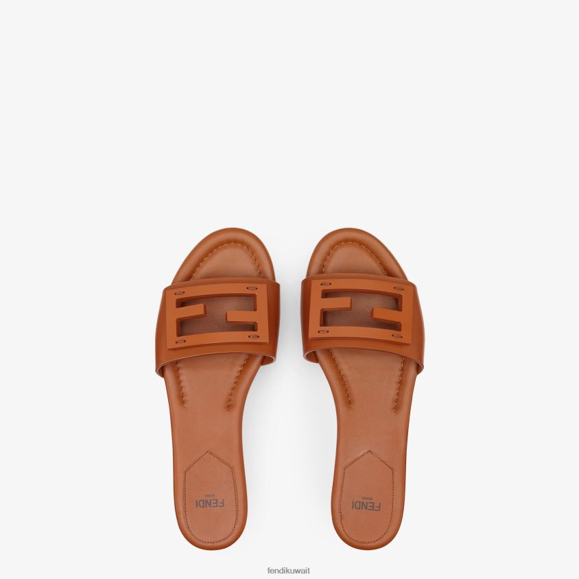Fendi بني نحيف شرائح من جلد الرغيف الفرنسي RTJZ1267 أحذية