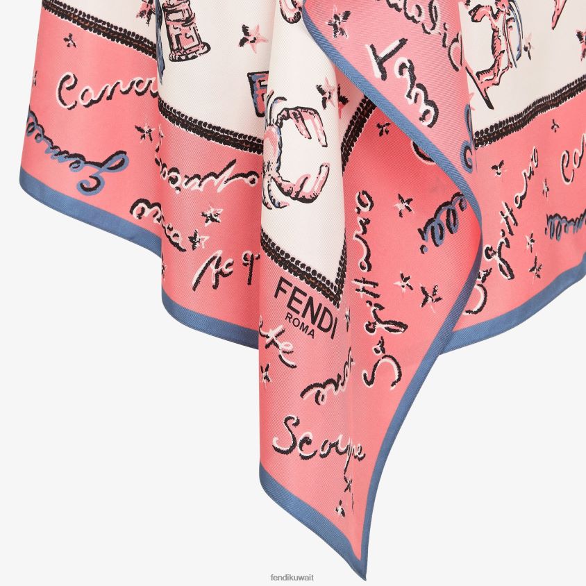تنورة فولارد صغيرة. تخلق اللوحة الأمامية ثنيات ناعمة على الجهة الأمامية وحاشية غير متماثلة. مصنوعة من نسيج قطني طويل من الحرير الوردي والأبيض. تم تخصيصه بطبعة علم التنجيم من فندي على كامل التصميم.