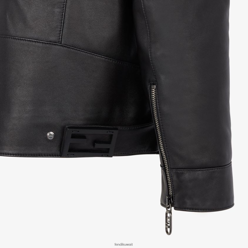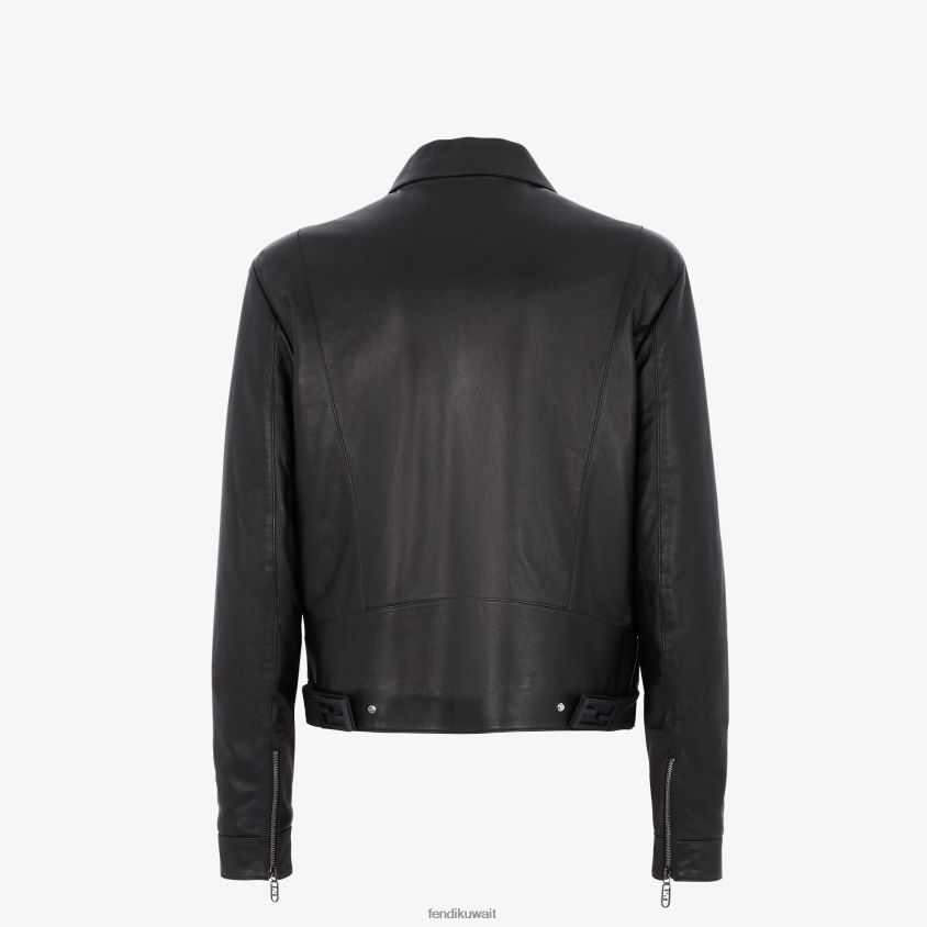 Fendi أسود رجال سترة راكب الدراجة النارية من جلد النابا RTJZ2097 ثياب