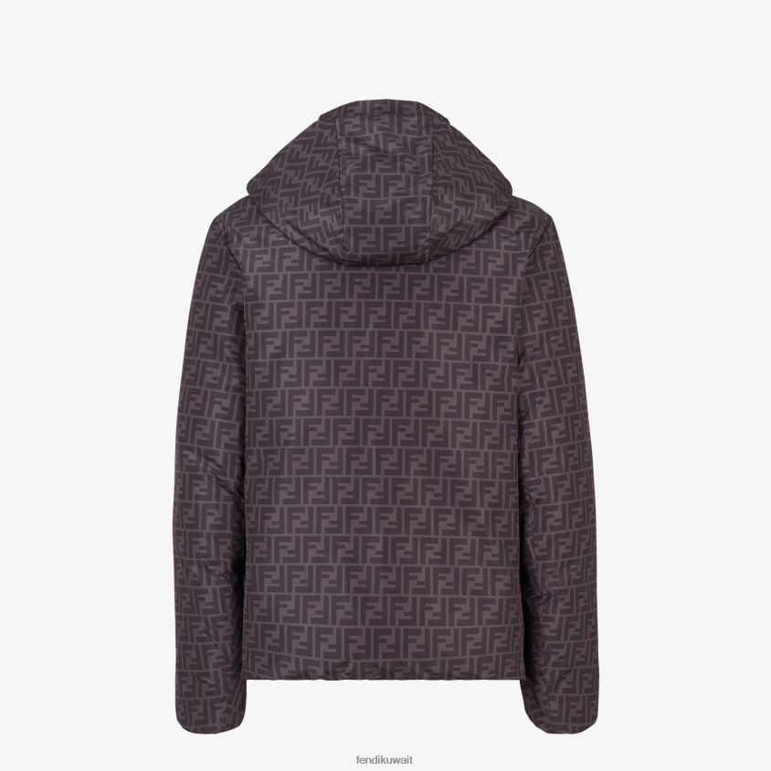 سترة مبطنة ذات وجهين مع غطاء رأس وجيوب على كلا الجانبين. إبزيم الرمز البريدي. مصنوع من النايلون ومخصص على جانب واحد بنمط ff باللونين الأسود والرمادي. والجانب الآخر به زخرفة بيكيني مخططة بنفس الألوان.