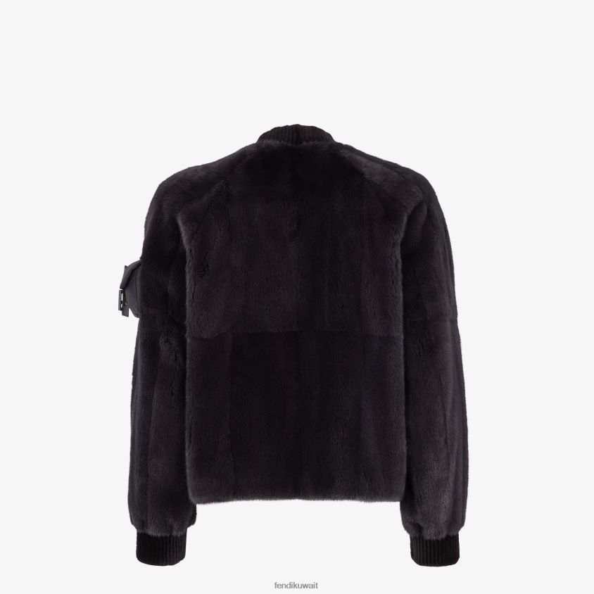 سترة بومبر بياقة وأساور متماسكة. جيبان بحاشية. إبزيم الرمز البريدي. مصنوع من فرو المنك الأسود مع جيب من النايلون على الكم الأيسر.