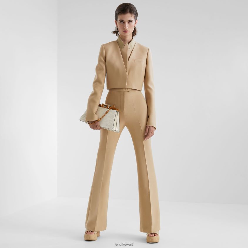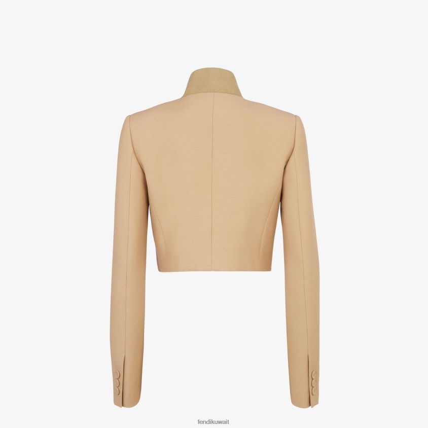 Fendi اللون البيج نحيف بوليرو من الصوف والحرير RTJZ1085 ثياب