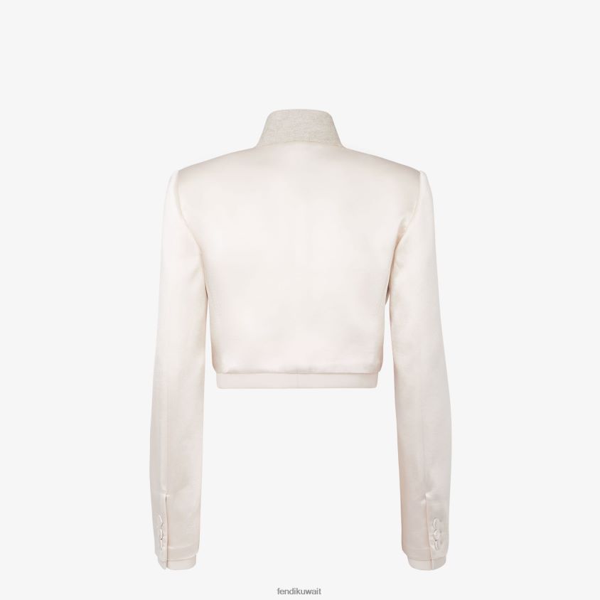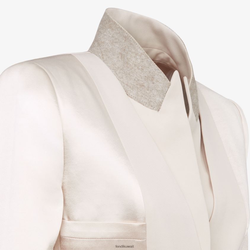 Fendi اللون البيج نحيف سترة من الساتان والصوف والجبردين RTJZ1121 ثياب