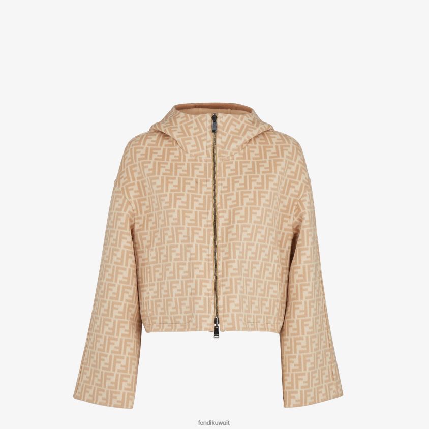 Fendi اللون البيج نحيف سترة من الصوف RTJZ1110 ثياب