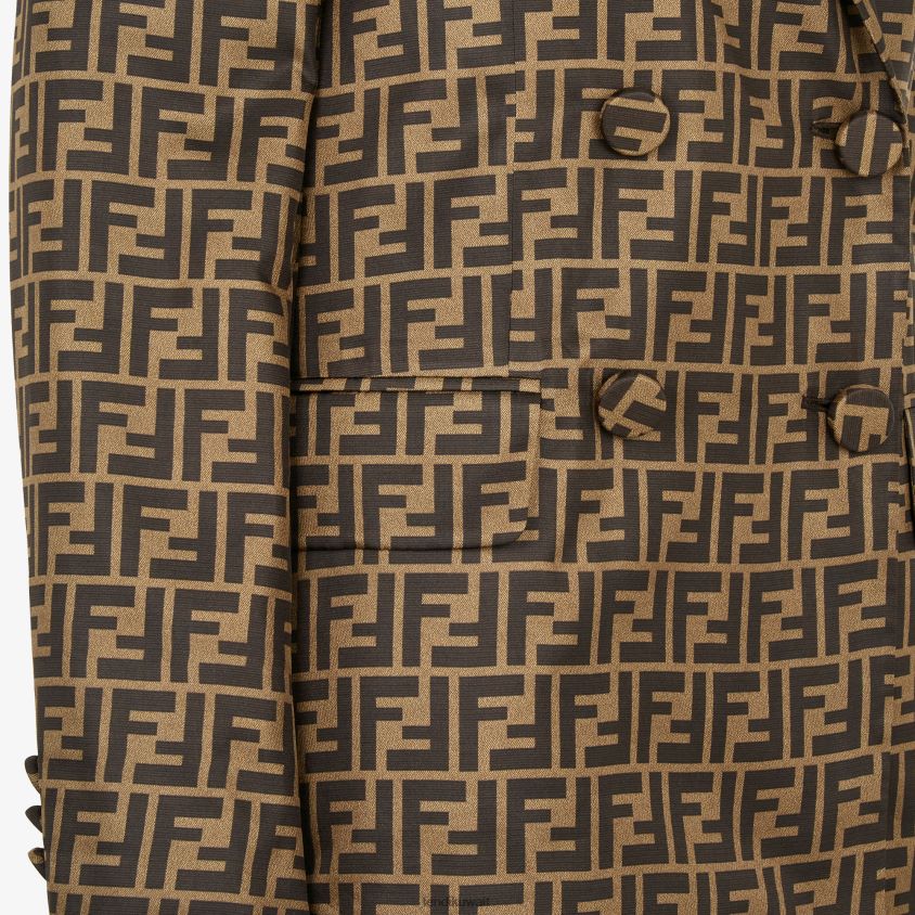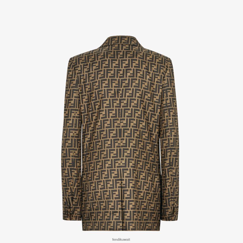 Fendi بني نحيف سترة حريرية RTJZ1230 ثياب