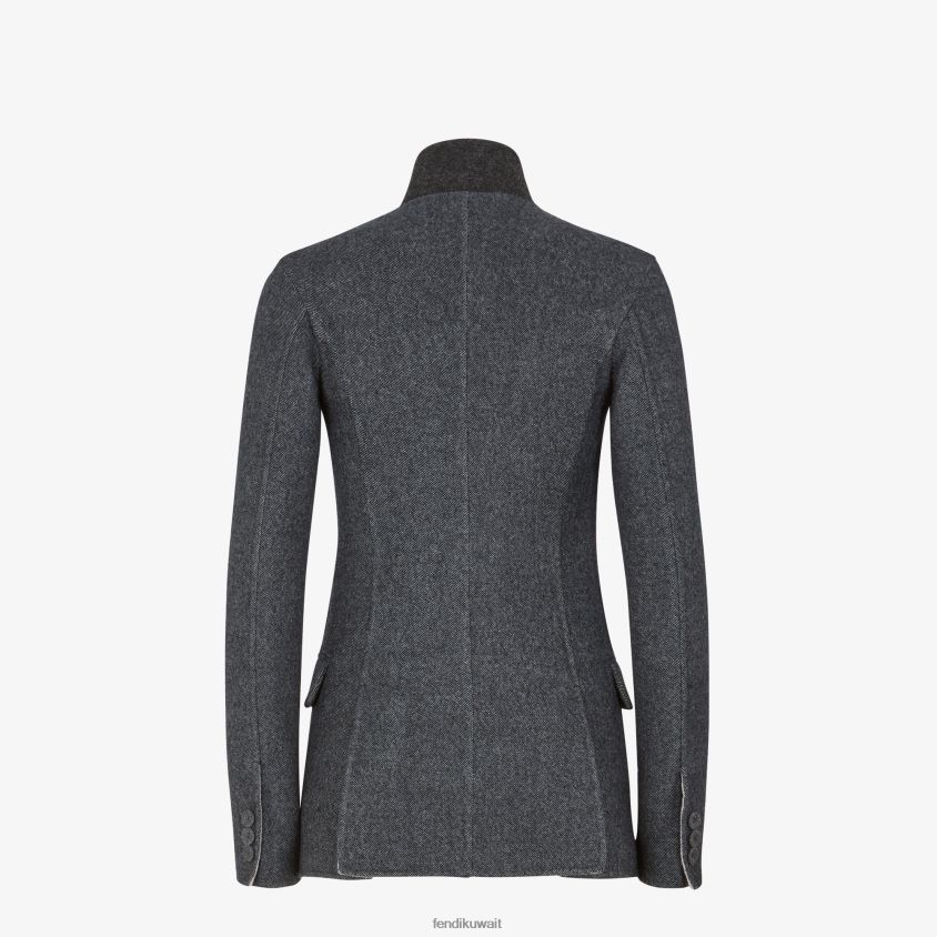 Fendi رمادي نحيف سترة من الصوف RTJZ1214 ثياب