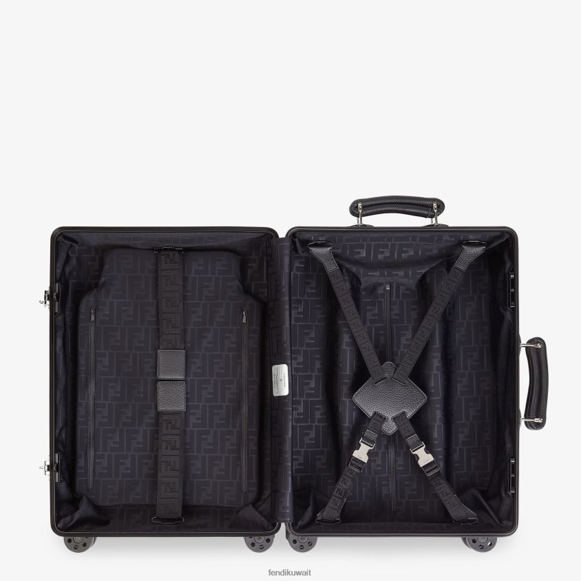 Fendi أسود رجال حقيبة عربة من الألومنيوم مع تفاصيل جلدية RTJZ1889 مُكَمِّلات