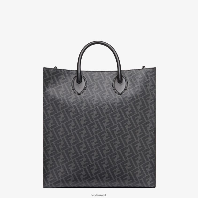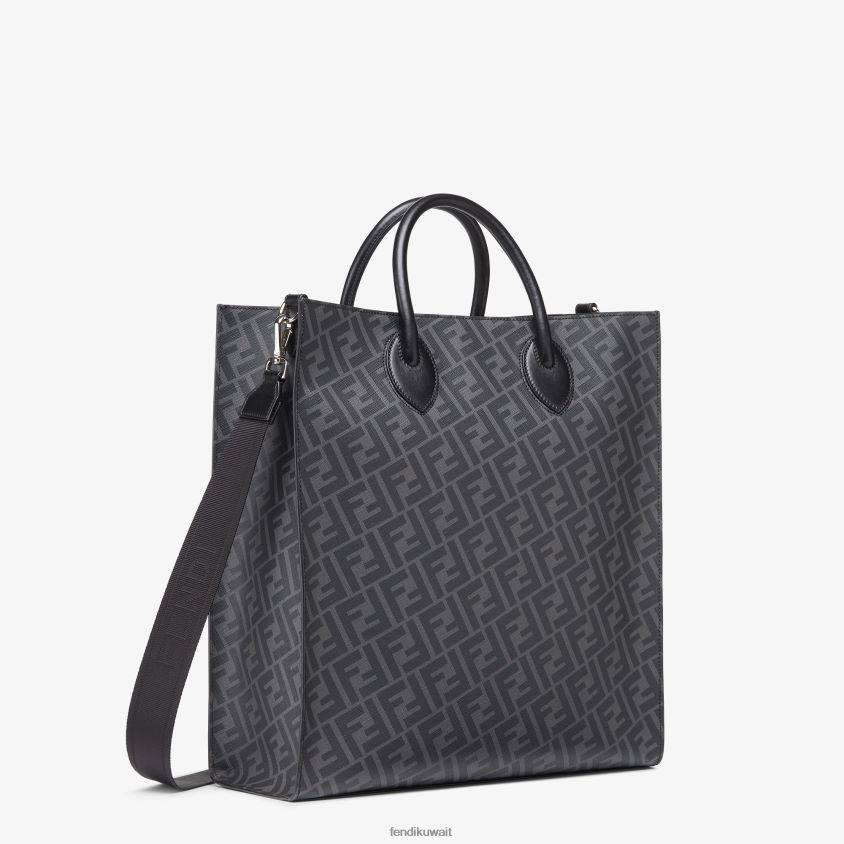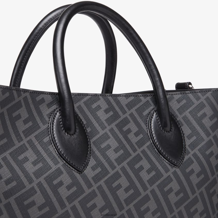 حقيبة تسوق مصنوعة من الجلد الأسود والقماش باللون الرمادي.