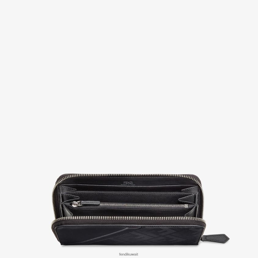 Fendi أسود رجال ظل بسحاب قطري حول المحفظة الجلدية RTJZ2642 مُكَمِّلات