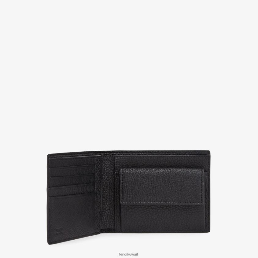Fendi أسود رجال محفظة جلدية محفظة ثنائية الطي RTJZ2671 مُكَمِّلات