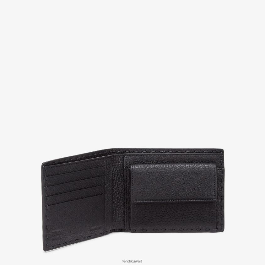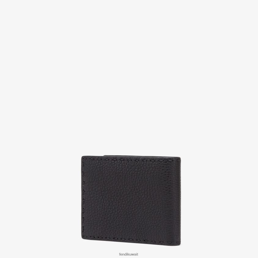 Fendi أسود رجال محفظة سيليريا الجلدية ثنائية الطي RTJZ2648 مُكَمِّلات