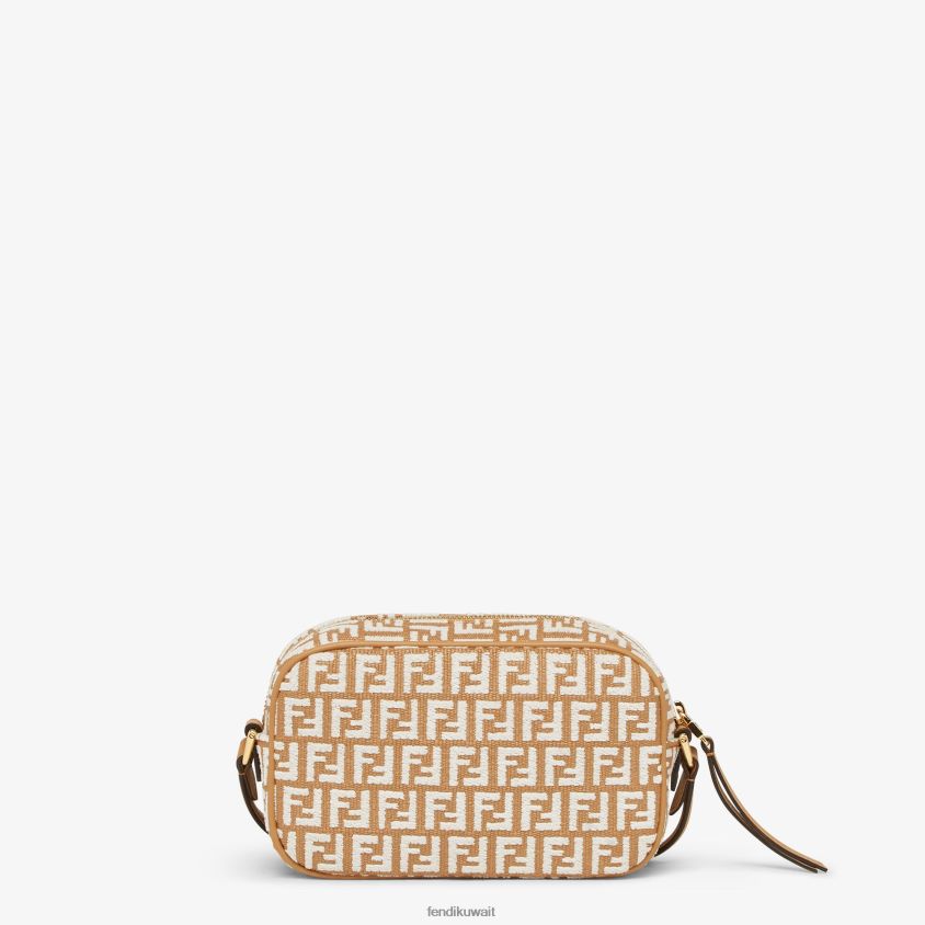 Fendi أبيض نحيف حقيبة صغيرة من الرافية مزينة بنقش ff من القماش المزخرف RTJZ647 مُكَمِّلات
