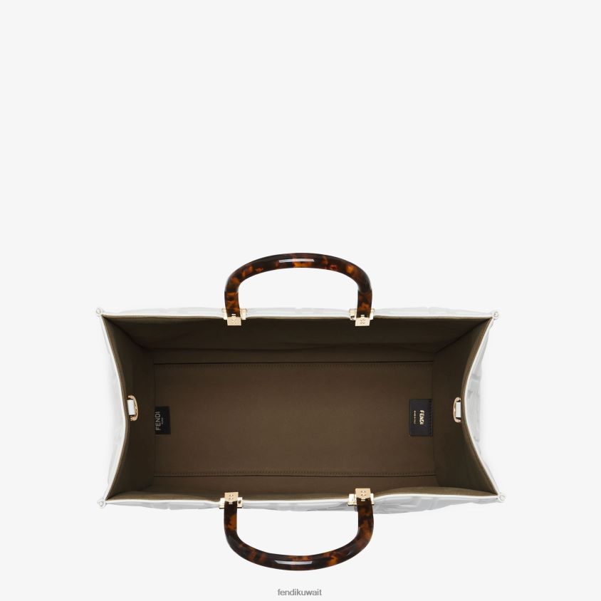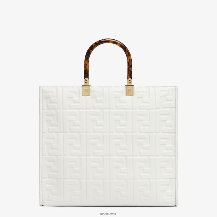 Fendi أبيض نحيف متسوق جلدي متوسط الحجم من صن شاين RTJZ764 مُكَمِّلات