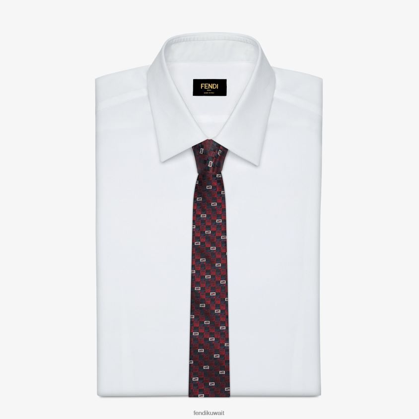 ربطة عنق حريرية. العرض: 6.5 سم - 2.56 بوصة مزين بزخارف ff باللون الأزرق والأحمر والبيج.