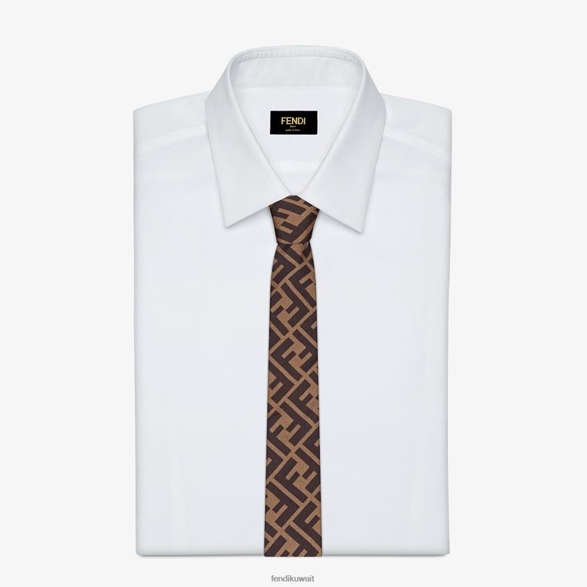Fendi بني رجال ربطة عنق حريرية RTJZ2367 مُكَمِّلات