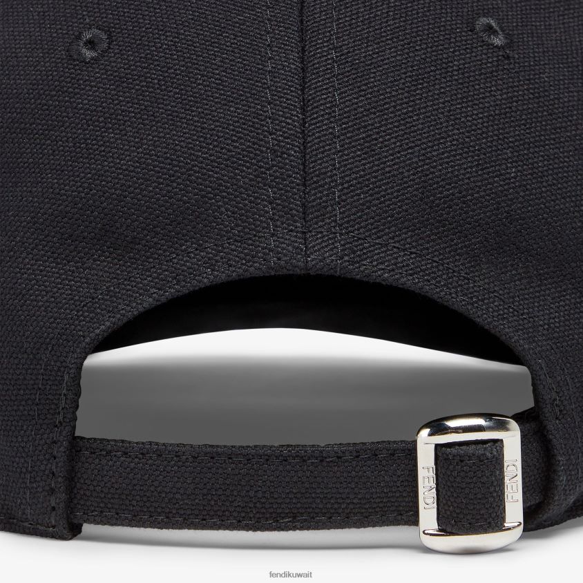 Fendi أسود رجال قبعة بيسبول قماش RTJZ2324 مُكَمِّلات
