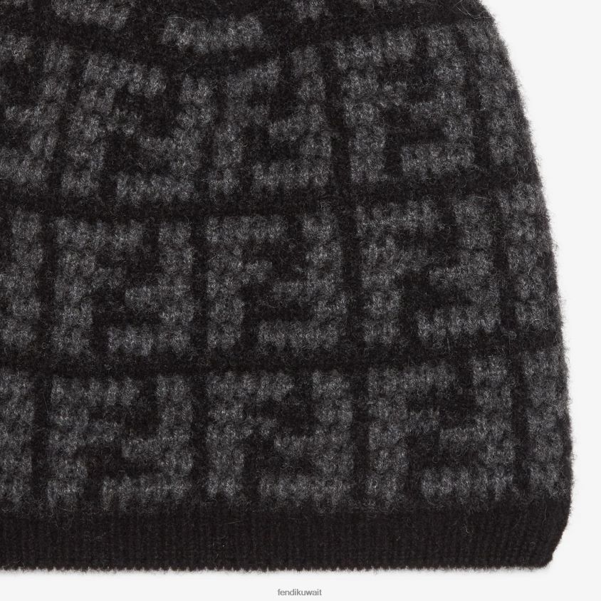 طاقية مصنوعة من الكشمير ومطعمة بالكامل بزخارف ff باللونين الرمادي والأسود.
