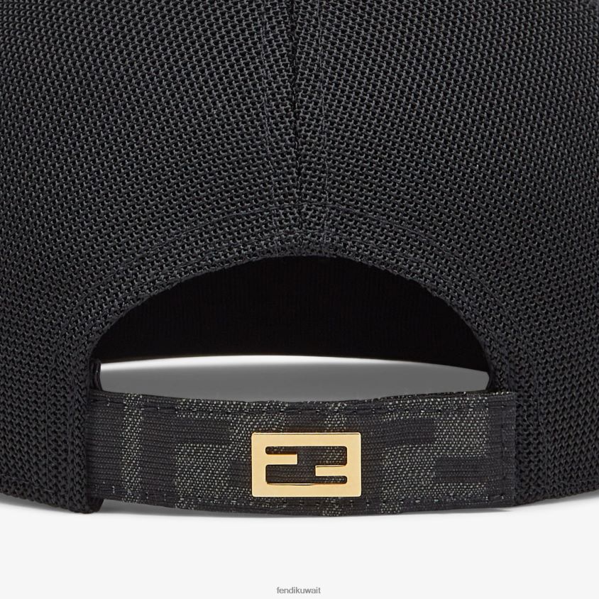 قبعة بيسبول ذات قمة شبه صلبة. إبزيم بشريط فيلكرو قابل للتعديل. مصنوع من القماش مع تصميم جاكار ff باللونين الأسود والرمادي. تفاصيل جلدية سوداء. حشوة شبكية باللون الأسود على الظهر.