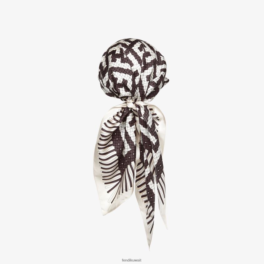 قبعة فولارد مع قناع. مصنوع من الحرير، مع تأثير ترومب لويل وزخارف متشابكة مطبوعة بالكامل باللونين الأسود والبيج. قناع نابا ناعم بلون مطابق. حاشية بلمسة نهائية يدوية.