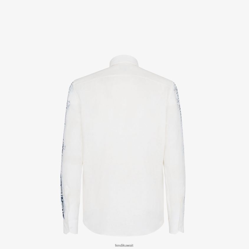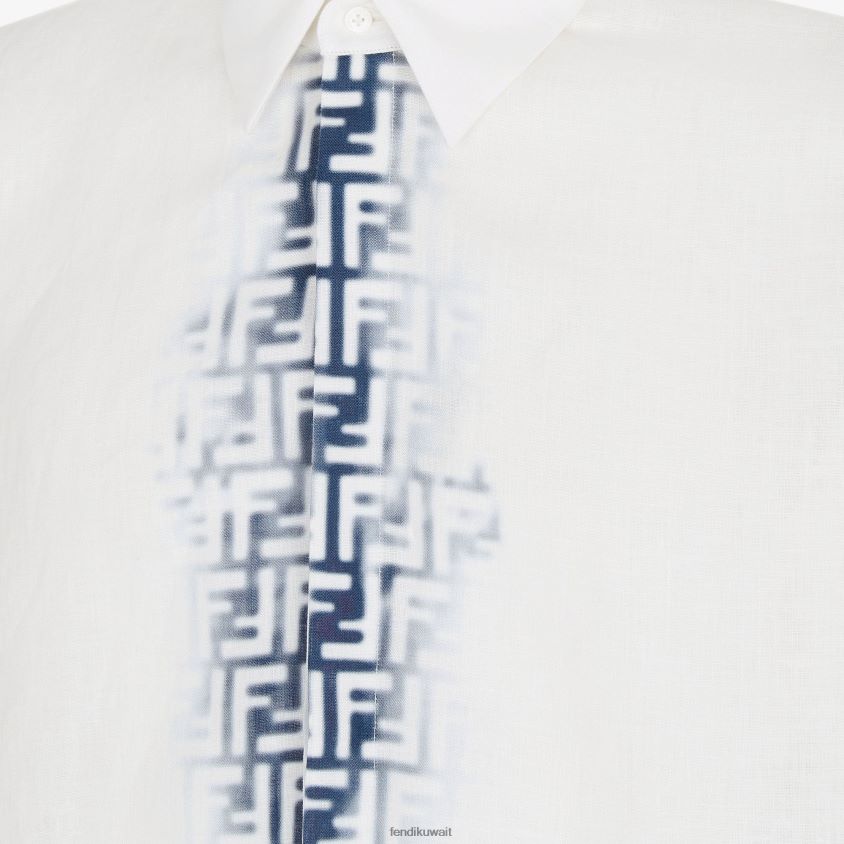 Fendi أزرق رجال قميص الكتان المبيض RTJZ2038 ثياب