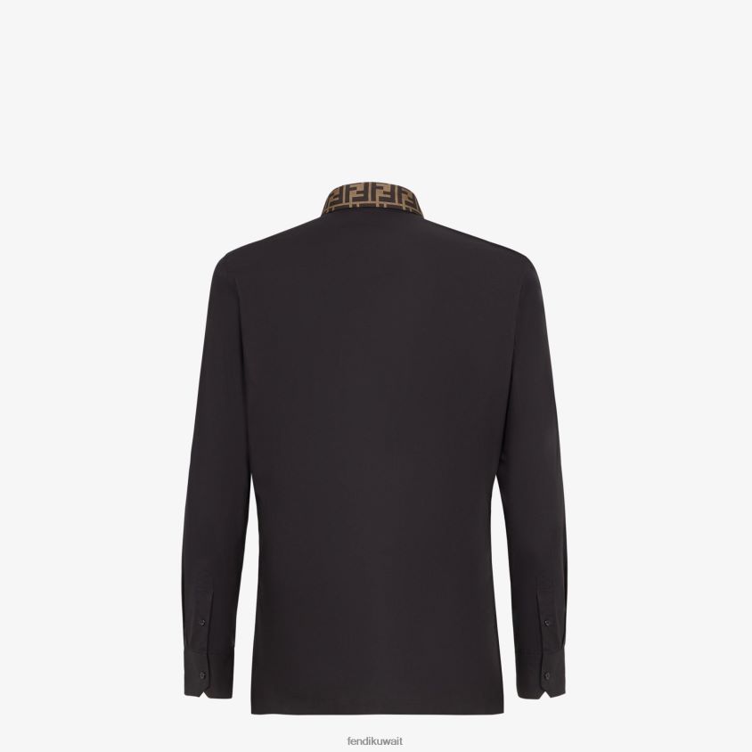 قميص ذو قصة عادية مع ياقة على الطراز الإيطالي. إبزيم الزر. مصنوعة من قماش البوبلين القطني الأسود. ياقة متباينة مع شعار جاكار ff.