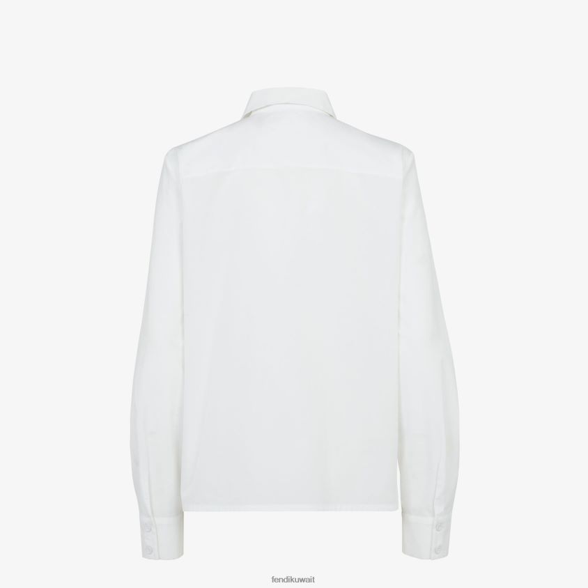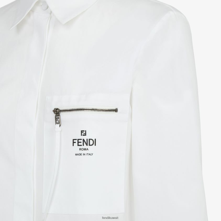 Fendi أبيض نحيف قميص قطني RTJZ1127 ثياب