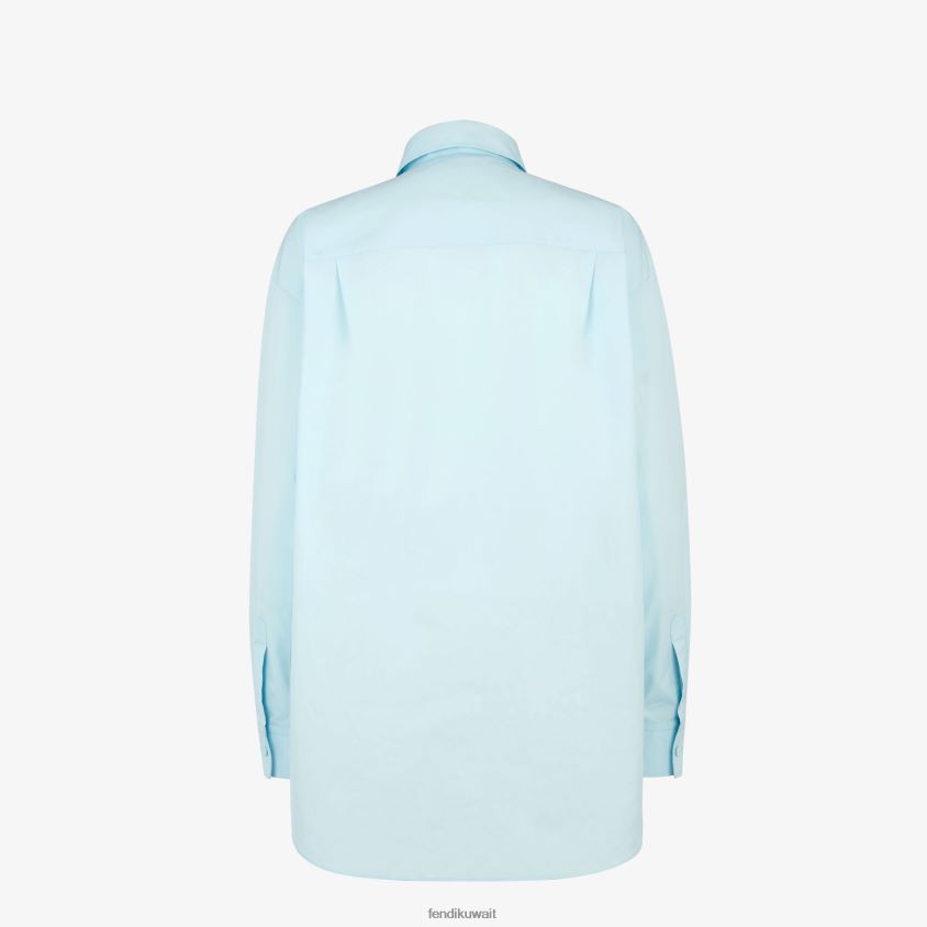 Fendi أزرق فاتح نحيف قميص قطني RTJZ966 ثياب