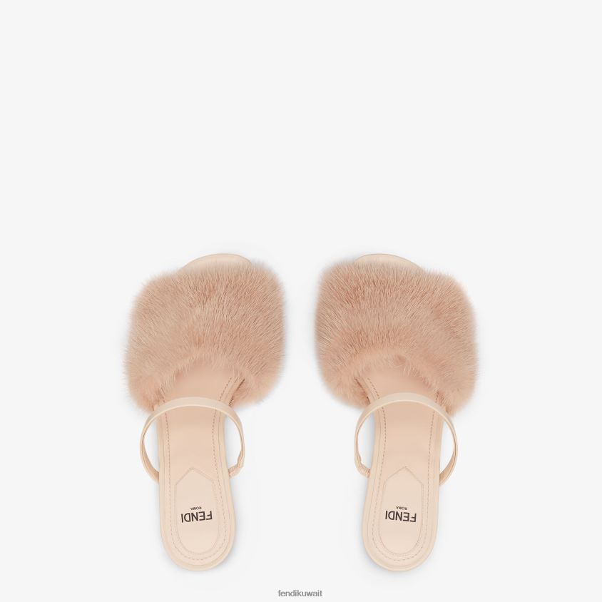 Fendi لون القرنفل نحيف صندل من فرو المنك الشاحب بكعب متوسط RTJZ1391 أحذية