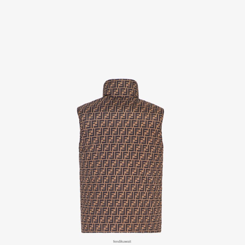 سترة مبطنة قابلة للعكس مع جيوب على كلا الجانبين. إبزيم الرمز البريدي. مصنوعة من النايلون البني. أحد الجانبين مبطن بنمط خطوط مائلة من التبغ، بينما تم تخصيص الجانب الآخر بزخرفة ff على كامل التصميم بنفس اللون.