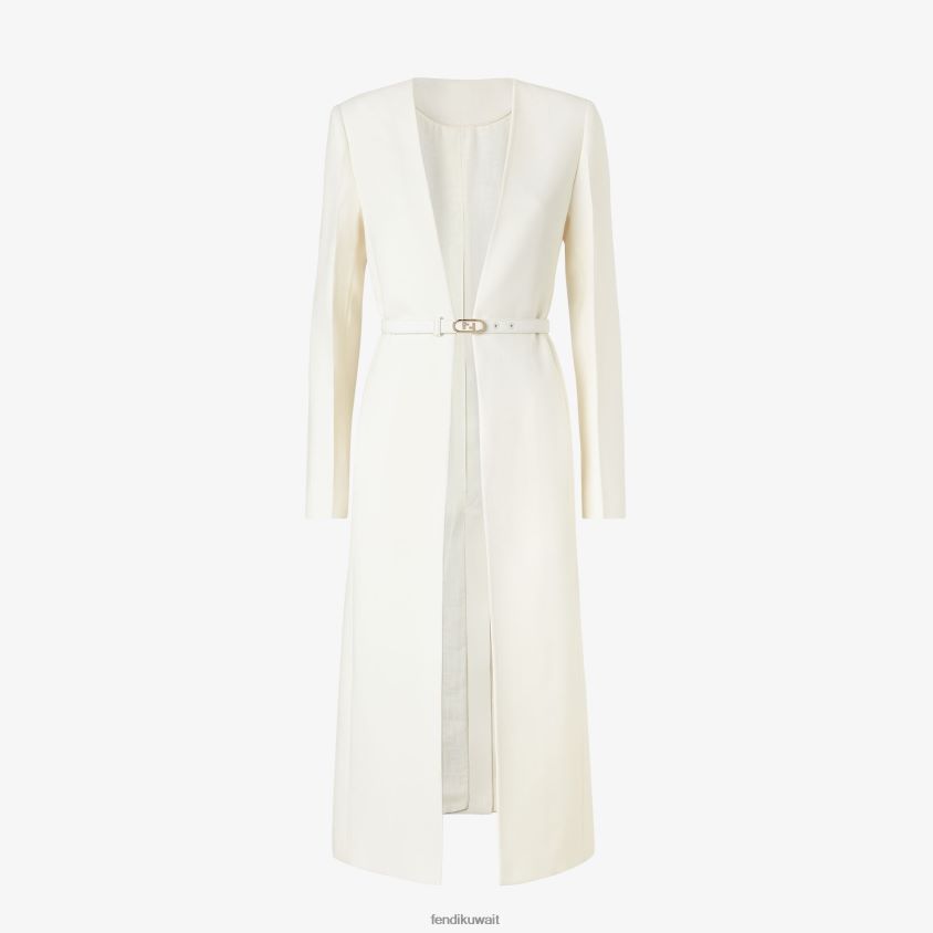 Fendi أبيض نحيف معطف من الصوف والحرير RTJZ1258 ثياب