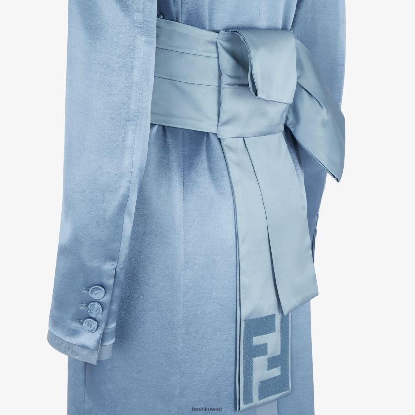 Fendi أزرق نحيف معطف من الساتان والصوف والجبردين RTJZ1124 ثياب
