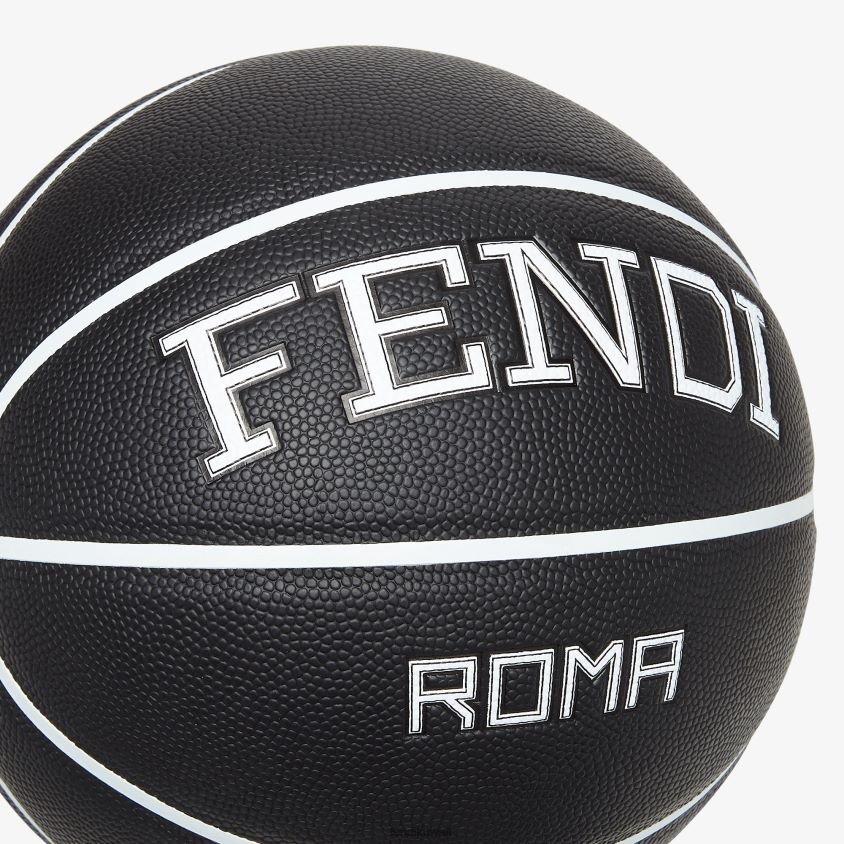 كرة سلة مصنوعة بالتعاون مع سبالدينج، مصنوعة من المطاط الأسود مع طبعة فندي روما المرتفعة قليلاً. تفاصيل بيضاء متباينة. مزود بقفص كروي مع حزام كتف منسوج وحروف فندي.
