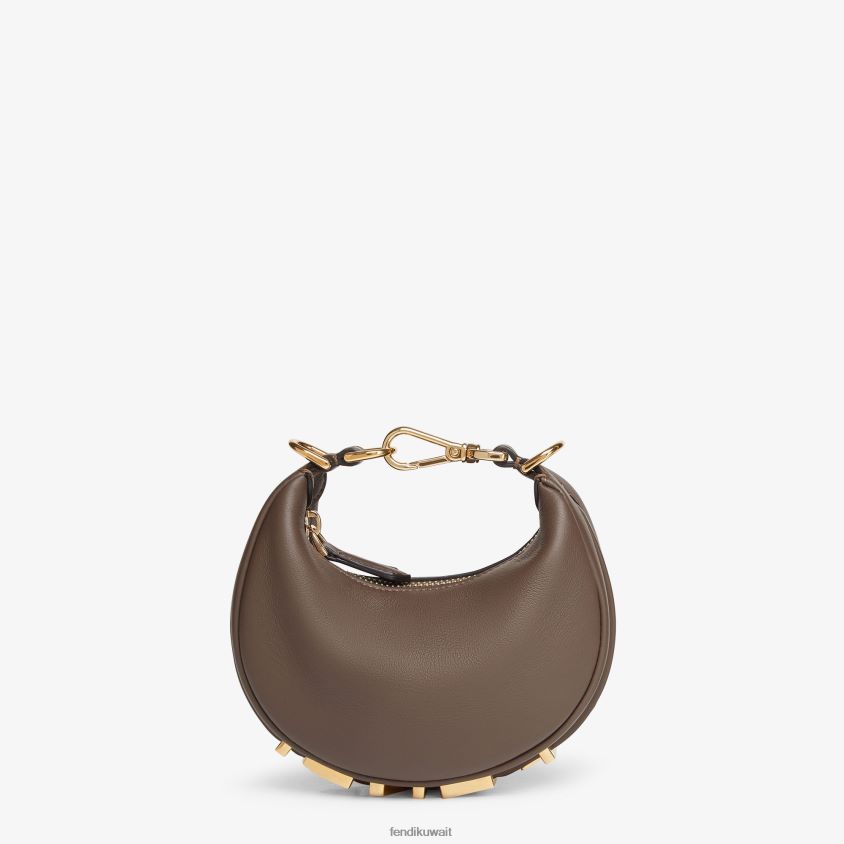 حقيبة هوبو نانو فنديجرافي مع سحاب للإغلاق، ومزينة بحروف فندي معدنية ذهبية عتيقة. يسمح الحزام القابل للتعديل مع المشبك بربطها بحقائب أكبر أو ارتدائها على المعصم. يأتي مع خطافات لحزام الكتف. مصنوع من الجلد البني الداكن. أدوات معدنية مطلية بالذهب.