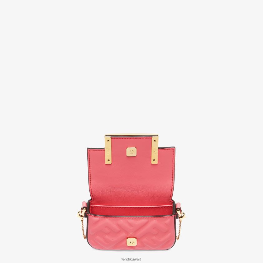 نسخة نانو من حقيبة الرغيف الفرنسي الشهيرة، مع غطاء وقفل مغناطيسي. يسمح المشبك بربطه مثل التعويذة بالحقائب أو الأحزمة الأكبر حجمًا. كما يمكن ارتداؤها بشكل متقاطع بفضل حزام الكتف القابل للتعديل. حامل بطاقة الائتمان جيب مسطح بالداخل. مصنوع من جلد نابا باللون الوردي مع زخرفة FF منقوشة. أدوات معدنية مطلية بالذهب.