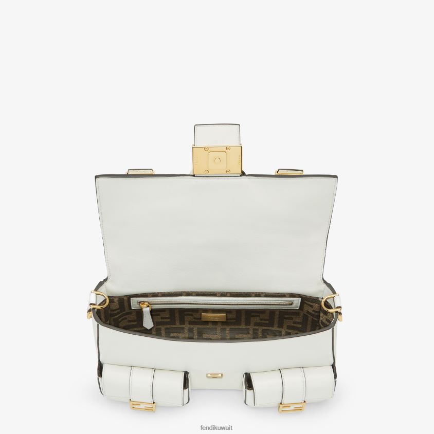 حقيبة باغيت متعددة الجيوب مصنوعة من جلد النابا الأبيض الناعم، مع خمسة جيوب بأحجام مختلفة. الجيوب والغطاء الأمامي مزينان بإبزيم ff الأيقوني.
