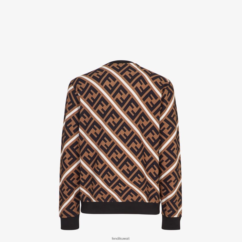سويت شيرت بأكمام راجلان وياقة دائرية. مصنوع من قطن جيرسي باللون البيج. مخصصة بزخارف قطرية ff باللون الأسود. خطوط متباينة باللون الأبيض.