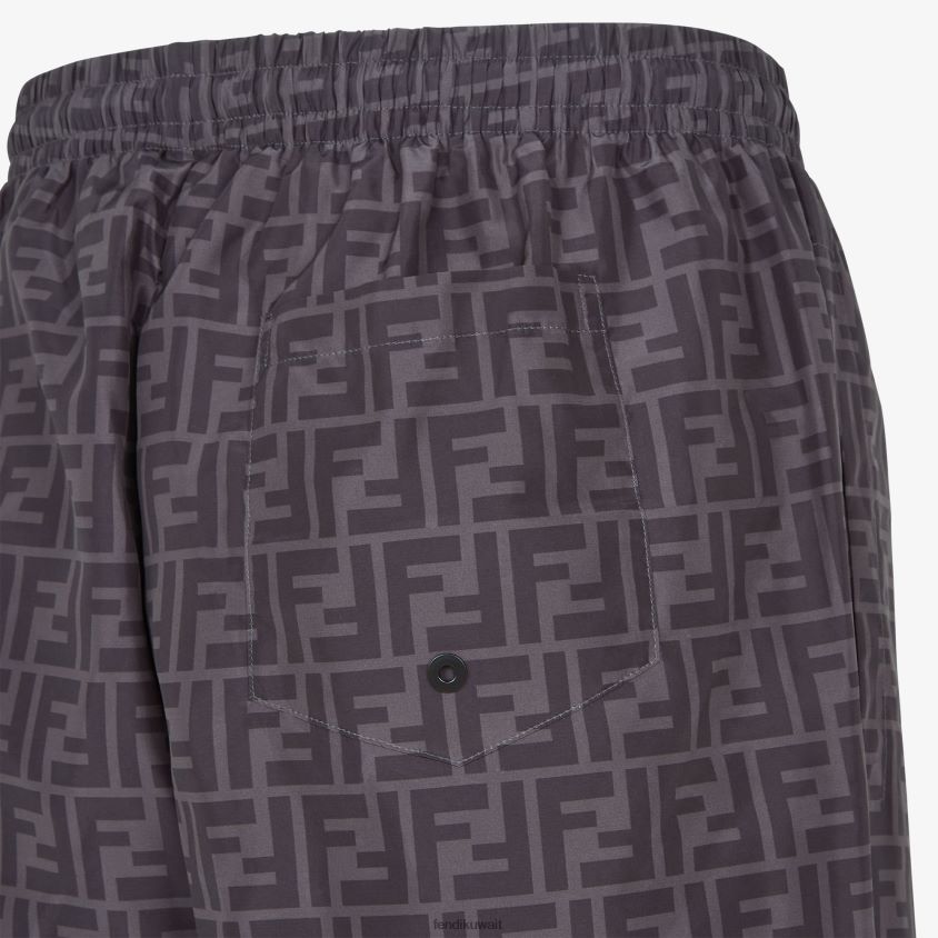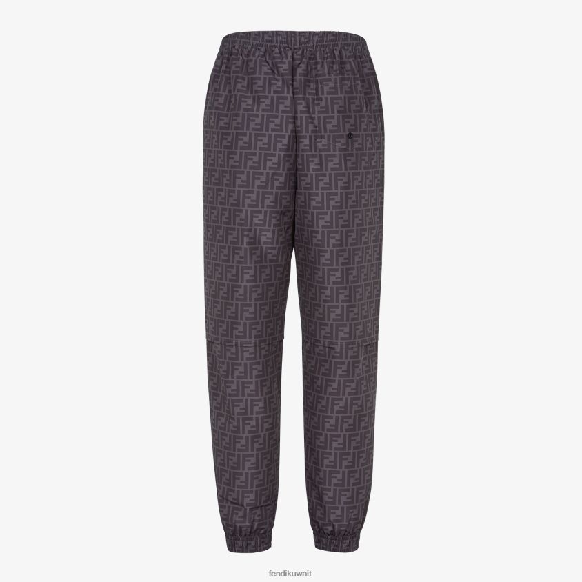 بنطلون رياضي بحزام خصر برباط وإضافات مطاطية عند الكاحل. مصنوع من النايلون الأسود مع شعار ff مطبوع بالكامل بظلال من اللون الرمادي.