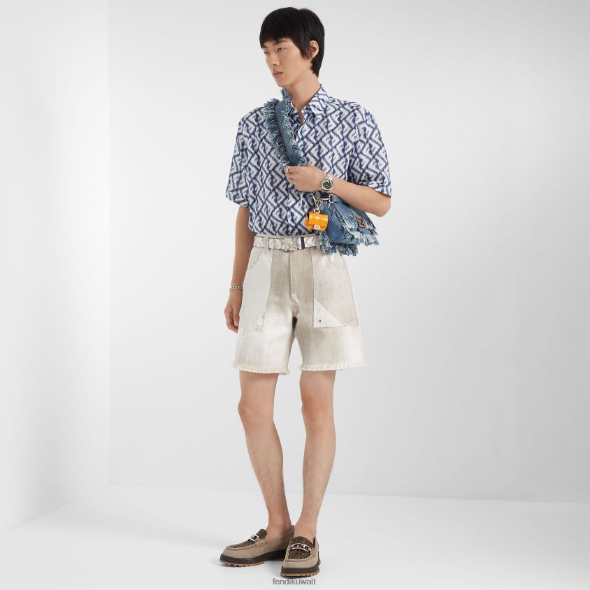 Fendi اللون البيج رجال السراويل الدنيم برمودا RTJZ2002 ثياب