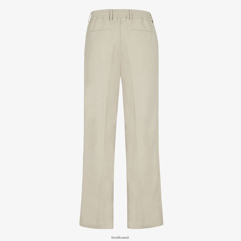 بنطلون سيجارة بحزام خصر مطاطي وطيات في الأمام. جيوب على الجوانب وجيب بسحاب في الخلف. حلقات الحزام والتجعد المضغوط على الساق. إغلاق بسحاب مخفي. مصنوعة من الكتان الرمادي. لوحة فندي أولوك معدنية صغيرة على حلقة الحزام.
